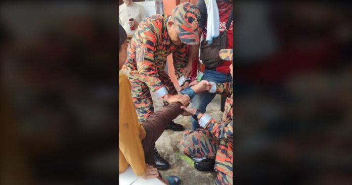 (吉隆坡17日讯)罕见意外!一名男童的脚踝不知何故被凉鞋卡住动弹不得,最终需劳动数名消防员到场营救,才能脱困!