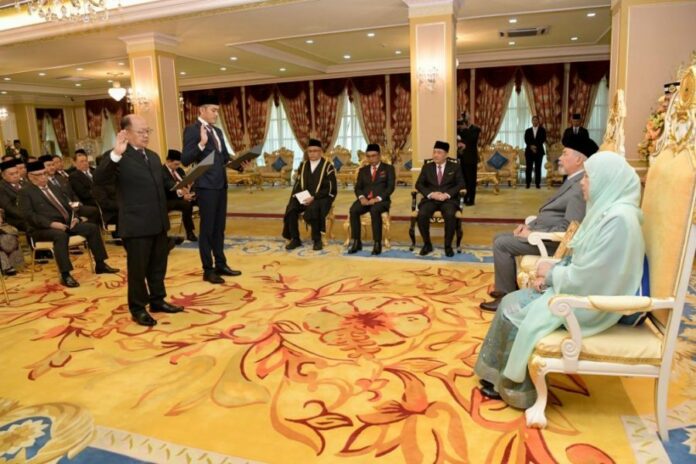阿汉布拉和杨伟光在首席部长拿督斯里哈芝芝诺出席的委任仪式后,今日于州元首府在州元首敦朱哈马希鲁丁面前宣誓就任。