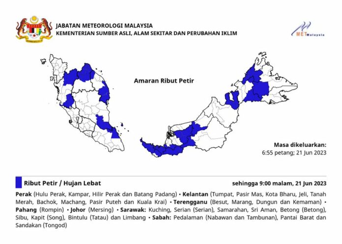 沙巴 今日多地区将有雷雨 2023年6月22日 (亚庇22日讯)国家气象局发出预告,国内多个地区今天将会有雷雨,包括本州内陆地区的纳巴湾及担布南,西海岸及山打根的东谷区.依据国家气象局昨晚6时55分所发出的警示指出,有关预告将持续至今晚9时。Advertisement