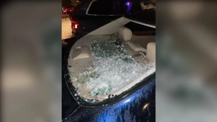 冰雹的力道非常惊人,不仅汽车的挡风玻璃被打碎,汽车引擎盖上撞出无数凹洞,还有至少90人受伤,其中7人伤势严重必须送往医院。