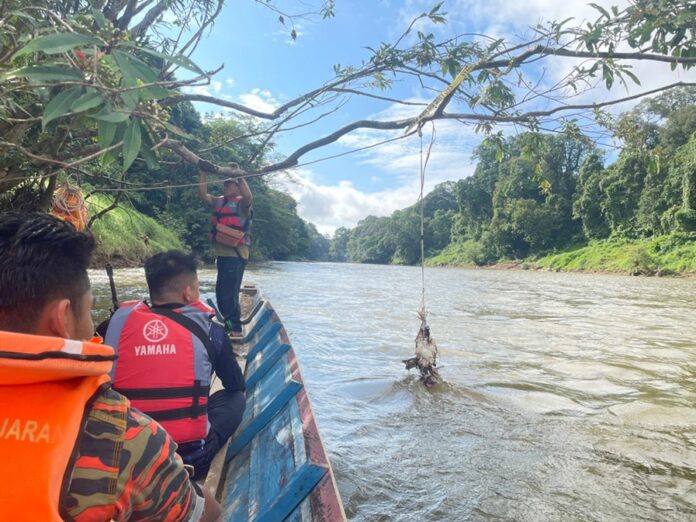 在本月26日,加帛消拯员使用伐木营道路,耗时2个小时抵达有关的地点,与森林业局官员和当地居民讨论后,展开行动,并暂时禁止居民在河边进行活动,使用船只在距离学校1公里处的上游河域置放两根钓竿。