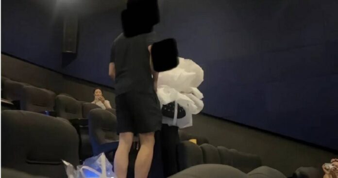 而电影结束后,男子就在电影院内手捧大束玫瑰,向女友求婚,过程被一名观众拍下放上网。