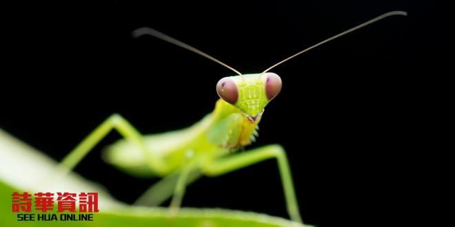 除了前肢特别巨大外,螳螂最明显的特征是那带着复眼又高度灵活的头,它的眼睛可以盯住正前方的任何活动目标。