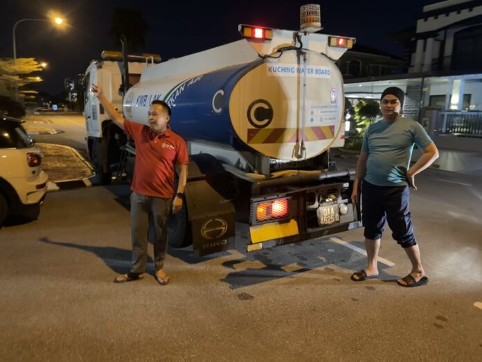 “然而,由于昨晚事发突然及事情的紧迫性,我们昨晚8时30分左右联系古晋水务局,要求当局出动水槽车救急。”