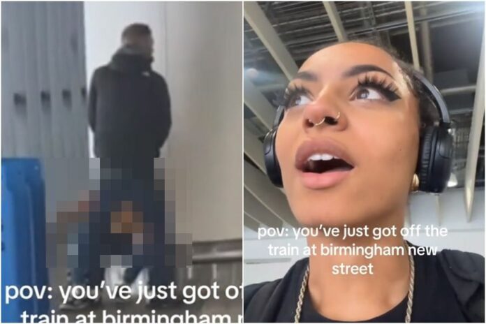 《每日星报》报导,女网友卢米尔(Marie Lumiere)日前在TikTok分享,她从伦敦搭火车到伯明罕新街站,正要前往市中心,却在售票大厅目睹限制级画面,令她忍不住停下脚步。