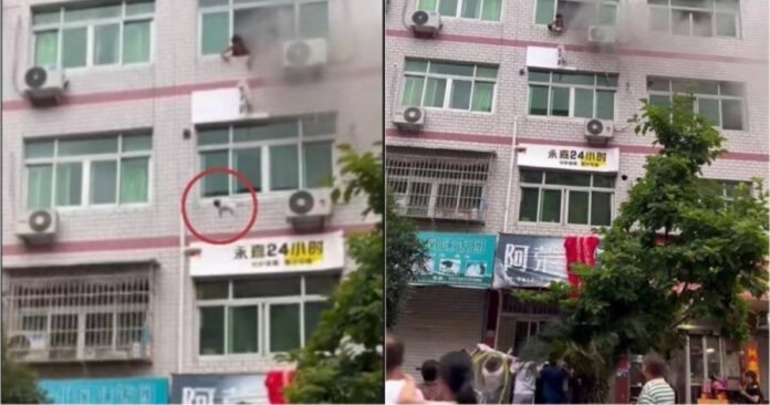 中国浙江温州市永嘉县一栋居民楼日前发生大火,一名母亲情急之下将家里才出生40多天的婴儿,从大楼4楼的窗边抛下,所幸楼下民众把手上的被单拉开,成功救了这个小宝宝。