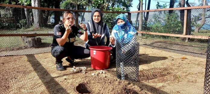 亚庇8日讯|亚庇岸外迪加岛迎来鳞甲海龟上岸产卵,管理层将49粒海龟蛋移至特别设置的保护区域,直至孵化出小海龟后放归大海。