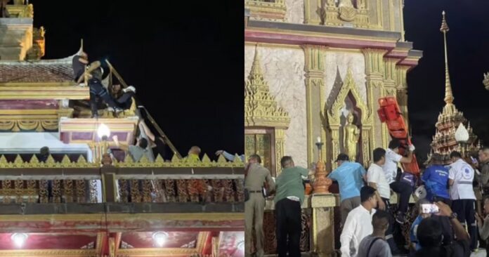 《曼谷邮报》报导,当地警方接获通报,指一名游客于周五(7日)下午5时30分左右,爬到了查龙寺的屋顶上。塔顶装有从斯里兰卡收到的佛陀舍利。
