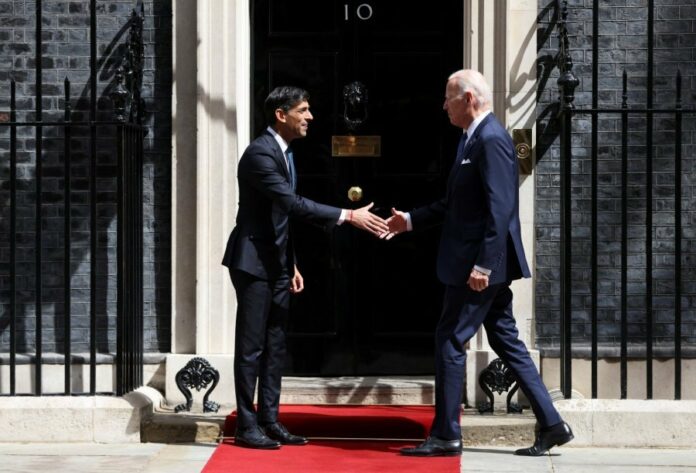 拜登周一强调,英美关系“坚若磐石”。苏纳克表示,双方将讨论如何合作强化经济安全;他指出,英美是北约内部最坚强的两个盟友,他知道双方将尽其所能强化欧洲-大西洋安全。