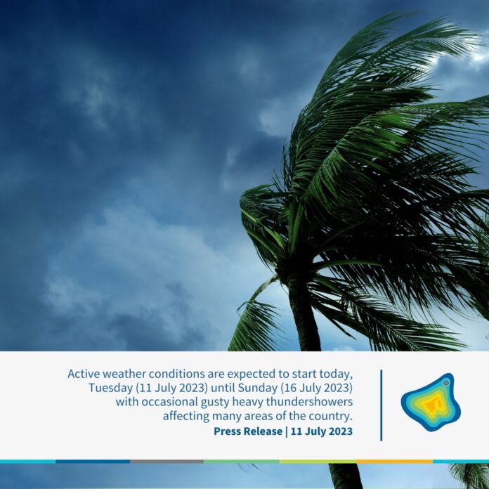 (汶莱斯市11日讯)汶莱气象局文告指出,预计从今天开始到本周日(7月 16日),汶莱持续迎来活跃天气状况,偶尔会有强风和暴雨影响全国多个地区。
