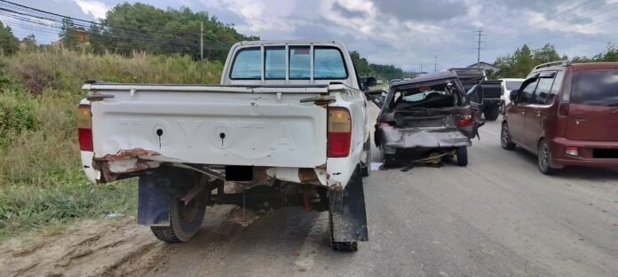亚庇13日讯|吧巴公路今午发生一起3连撞车祸,酿2名司机受伤入院。