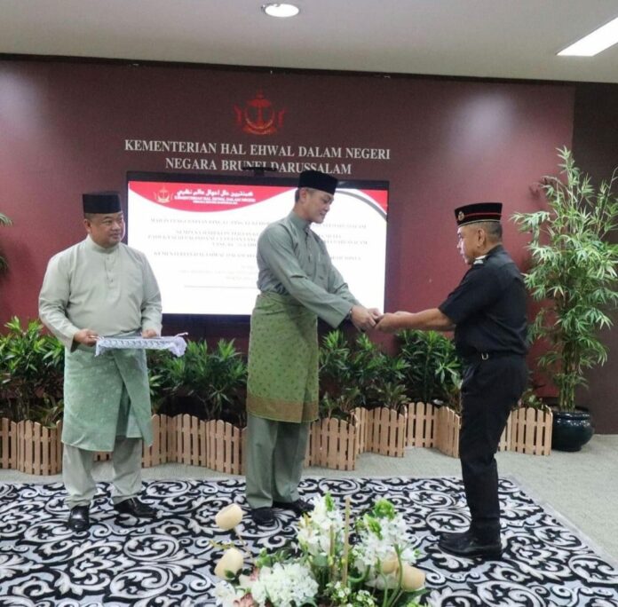 (汶莱斯市13日讯) 国防部、内政部和主要资源暨旅游部于今日颁发长期服务奖予该部门官职员。