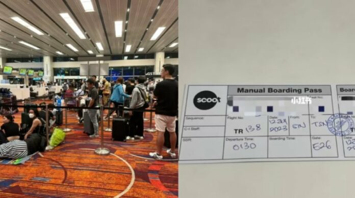 (新加坡14日讯)酷航(Scoot)登机系统周三午夜发生故障,导致部分航班延误。由于系统无法办理登机手续,工作人员不得不为旅客发出手写的登机证。