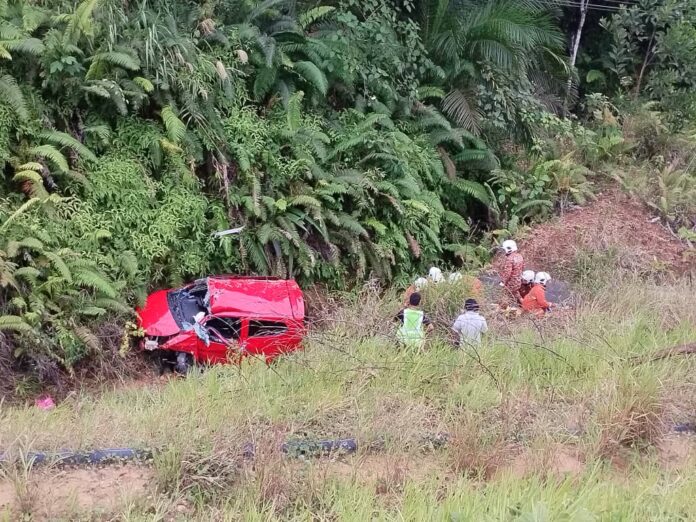 据悉,事发当时轿车是从诗巫朝民都鲁的方向行驶,轿车在行驶途经事发地点时失控,冲向路旁并坠落山谷。