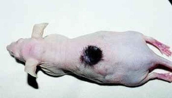 武训伟指,该批「人皮老鼠」被称为「裸鼠」,公司利用干细胞分离培养技术,在白老鼠后背製造出「人皮」,目前因有色素沉於皮下,方呈黑色。