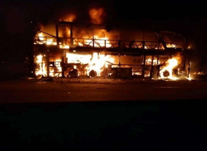 (文冬16日讯) 一辆载有44人的长途巴士,不知何故起火燃烧,所幸巴士司机和乘客及时逃生,才未造成人员伤亡。