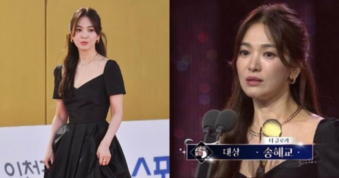 宋慧乔上台领奖时哽咽著说:“本来没有好好向工作人员问候的场合,藉著这个奖、这个位置可以好好地表达感谢,我很到很幸福,如果没有优秀的工作人员,就没有文同珢。”拿下场上最大赏,她谦虚表示:“以后可能不会再到达这样的位置了(意指奖项),我第一次想要称赞我自己,你辛苦了,慧乔。”