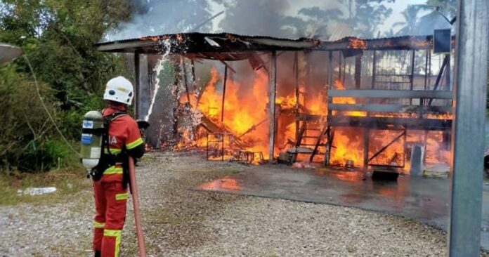砂拉越南砂 阿沙再也火灾木屋烧成废墟 七旬华裔屋主一家三口急逃生 2023年7月23日 (古晋23日讯)今日下午4时左右,阿沙再也甘榜叻峇住了一家三口的木屋,突然发生火患事件,火势很快将木屋吞噬,烧成废墟。Advertisement 失去家园的一家三口为现年70岁的华裔老屋主、其65岁的妻子及1名现年43岁的女儿。 他们3人都得以在揭发火灾发生后,第一时间逃出生天。 当地消拯单位是在今日下午4时27分接获投报后,立即派员赶赴灾场,展开救火工作。 消防员将火势扑灭后,临离开前,仍检查及确认现场安全与不会死灰复燃后,方才收队。