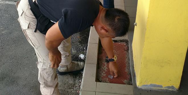 警方接获报案后,今早前往现场调查,并发现地上有1怀疑是用来装毒品的小塑胶袋。
