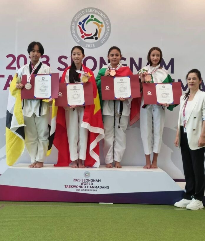 他们是在2023年韩国城南世界跆拳道武道大赛的第三天活动中获得荣誉。