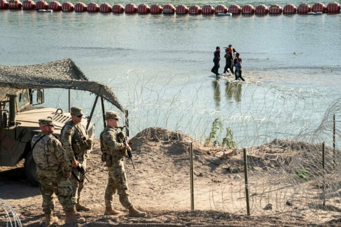 最近几个月,国民警卫队拉还起了刀片刺网,阻止移民穿越里奥格兰德河。