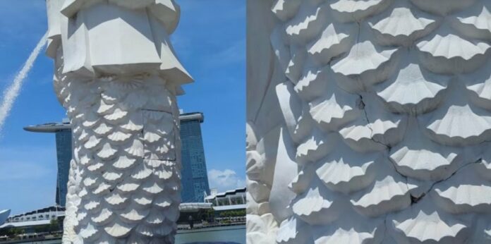 新加坡旅游局受询时,证实当局知道鱼尾狮出现相关裂痕,并表示鱼尾狮雕像将进行维修工作。