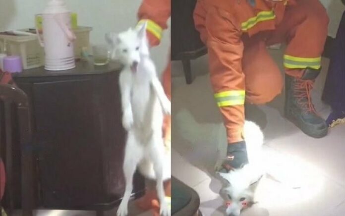 (吉首26日讯)中国湖南省吉首市近日发生一起有趣的事件,一名市民报警表示家里闯进了一只外表看似小白狗的动物,据称长得有些吓人,怎么哄都不肯走。警消人员赶到现场后,很快就发现了眼前的动物不是狗,并小心将其抓捕并带到适合的野外区域放生。