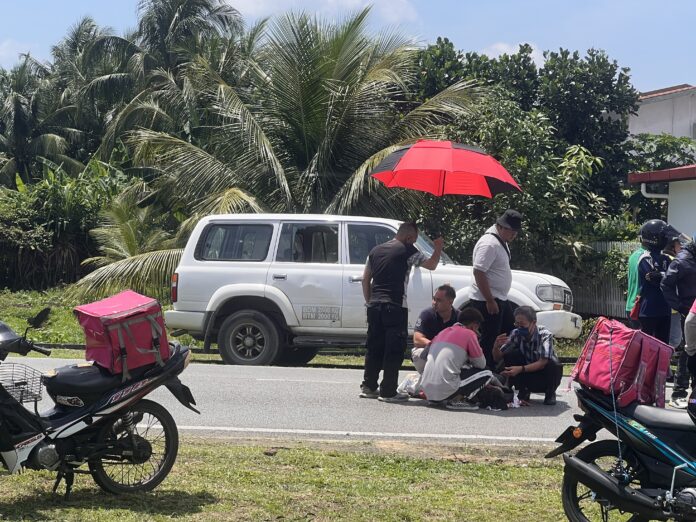 (民都鲁26日讯)一辆四驱车在从草地驶出大路时,没注意直路行驶的车子便直接拐出大路,以致一辆送餐员的摩托车撞上四驱车侧门,骑士受重伤。