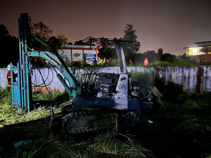 砂拉越南砂 古晋发生打钻机深夜着火 70%被烧毁 2023年7月26日 (古晋26日讯)打钻机于深夜突然起火,火势猛烈瞬间将重型机械烧得通红,庆幸此事件并没有造成任何受伤。Advertisement 此起火警事件是于昨晚11时许,在舍帝雅拉惹路发生。 达闽再也消防局接获投报后,立即派员赶赴现场展开灭火工作。 当时,消防员在赶抵现场,马上使用消防车后备水箱取水救火,将火势扑灭。 成功灭火后,消防员在确认该台已70%烧毁的打钻机不会死灰复燃,始打道回府。