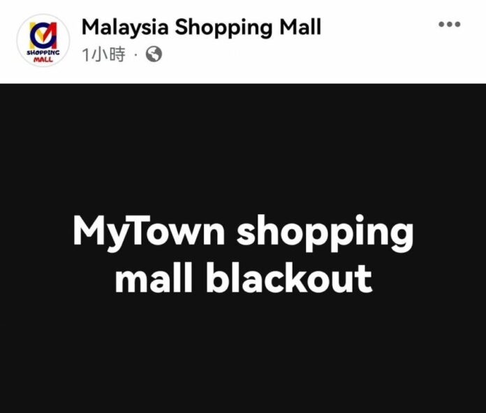 吉隆坡MyTown购物中心于今日在官方面子书发帖文证实,吉隆坡MyTown购物中心和吉隆坡部分地区,毫无预警地发生停电事故。