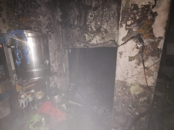 消防员赶到时,马上把使用1条水管带,从消防水槽水扑灭厨房火势。