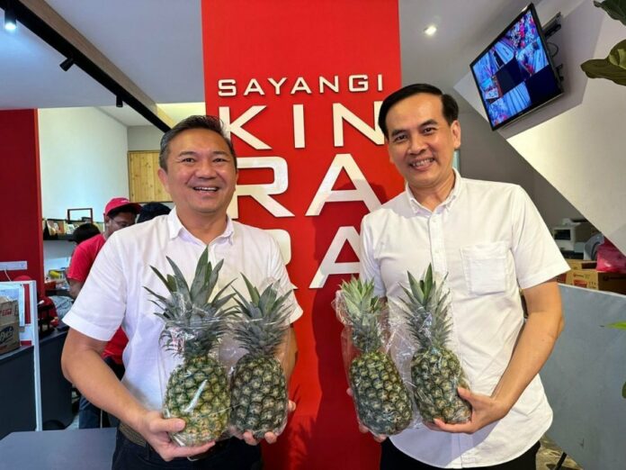 周忠信今早将新鲜采收的黄梨,亲自送到数名候选人的行动室,交流选战进展。收到“旺来”的候选人都很高兴周忠信从居銮将“兴旺送到来”行动室。