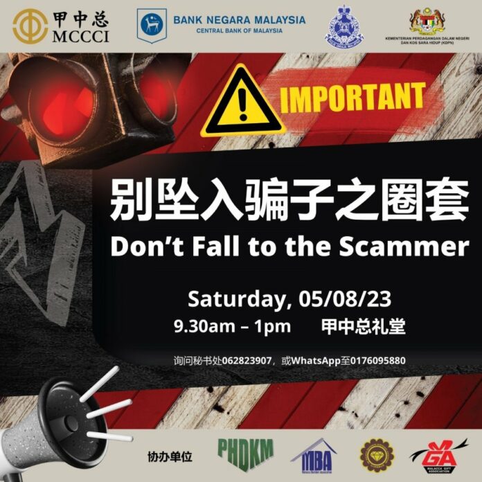 (马六甲30日讯)由马六甲中华总商会举将于8月5日举办“别坠入骗子之圈套”讲座会,该会呼吁会员商家和民众踊跃出席,以预防掉进诈骗陷阱。