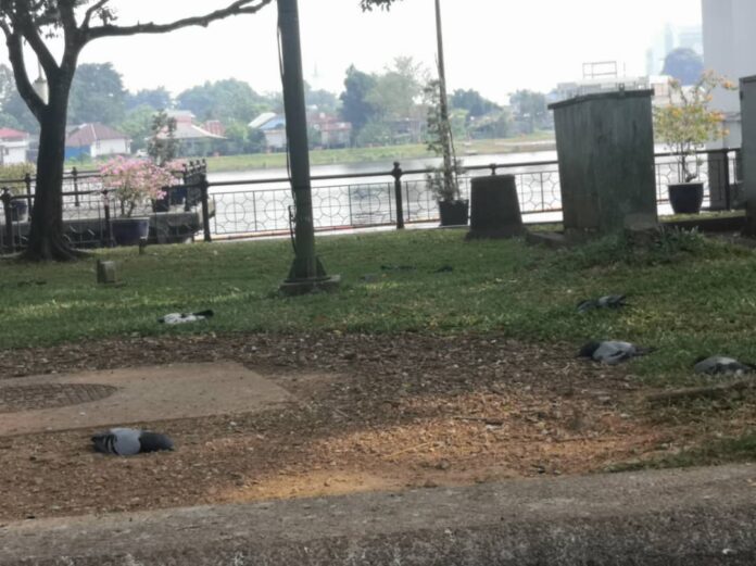 砂拉越南砂 古晋河滨公园惊见 数十只鸽子离奇集体死亡! 2023年8月2日 (古晋2日讯)今早在河滨公园发现至少30只鸽子死亡。Advertisement 经过检查发现,死鸽子大多集中在人行道旁边的草地上。此外,还有一些鸽子躺在附近,看起来昏昏欲睡。 社交媒体上也出现各种猜测,有人评论说这些鸟可能中毒或是受到天气的影响而生病。