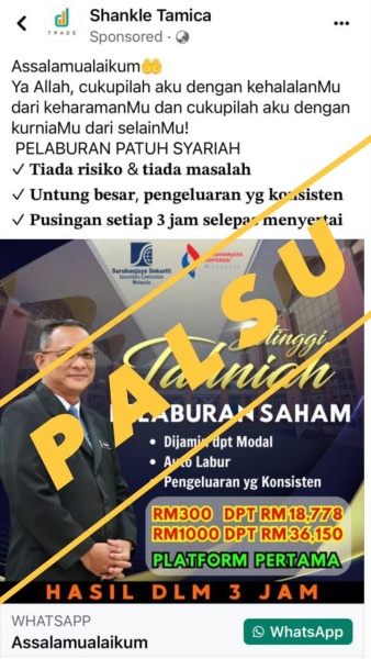 纳闽机构也吁请公众不要受到有关社交媒体上的海报广告所欺骗,而堕入诈骗伎俩。