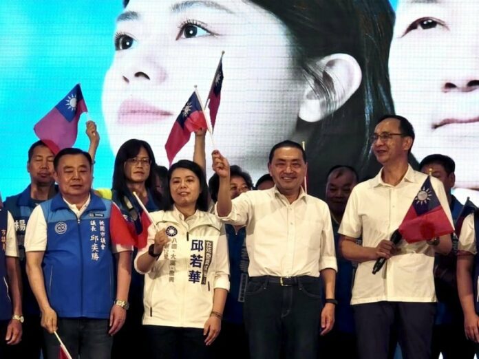 综合中央社等台媒报导,侯友宜周五上午和国民党主席朱立伦,一同参加在桃园市立委参选人邱若华的竞选活动。