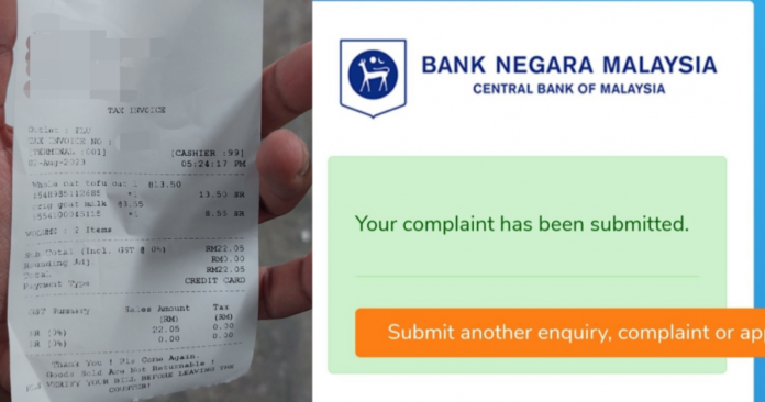 “后来我要了消费收据,就前往(向国行)提出投诉,因为我若可以在99 Speedmart用扣账卡支付低于5令吉的消费,为何这里不能。”