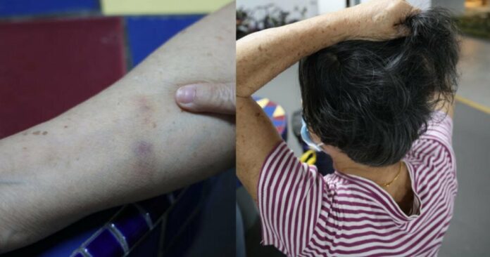 她说,当时被扯下一撮头发,隔天发现被扯头发的地方开始发疼,当时被抓的手部也出现淤青,额头甚至也肿了个包。