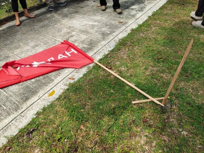 (芙蓉4日讯)武吉甲巴央选区20支希盟旗帜遭蓄意破坏,部分甚至被断成两截。