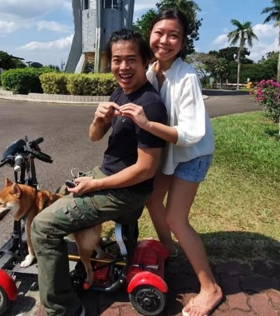 (新加坡8日讯) 新加坡一名前蛙人患有遗传性痉挛性截瘫,虽然正值壮年,但走路一拐一拐,还拄著拐杖,女友在交往前就已经得知他患有罕见病,仍对他不离不弃,两人爱情长跑6年,将于今年11月结婚。