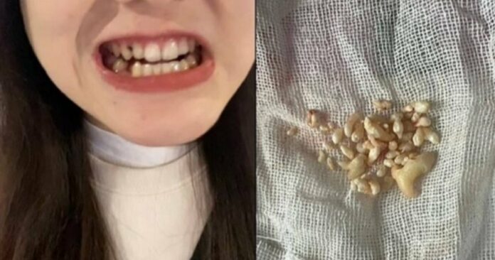 (江苏10日讯)中国一名23岁女子的缺牙处的牙龈里长了57颗“牙瘤”,动手术拔出各种大小与形状不一的牙齿,让网民惊呼连连。