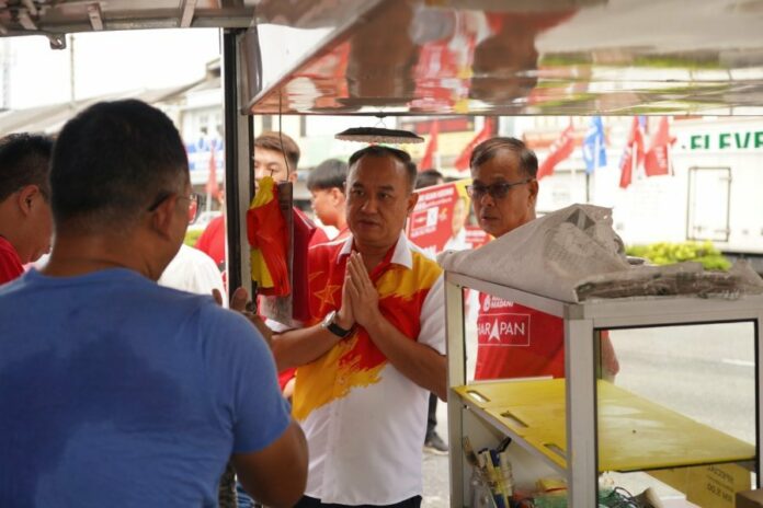 他恳请双溪比力选民,支持和委托他成为人民代议士,在8月12日投下手中神圣一票,让他保双溪比力,定雪州、稳布城!