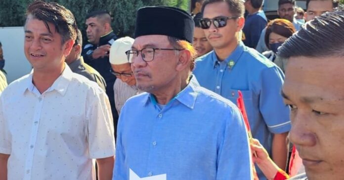 安华今天携带夫人旺阿兹莎前往柏玛当巴锡州议席的斯里本南地国小投票站进行投票,这也是他首次以首相身份回到选区进行投票。