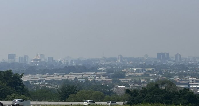 根据大马空气污染指数管理系统(APIMS)截止今早9时显示,古晋地区的空气指数已经达到85点,处于中等水平。从古晋北市市政局拍下来的风景,古晋市区在早上9时已经是灰朦朦一片。