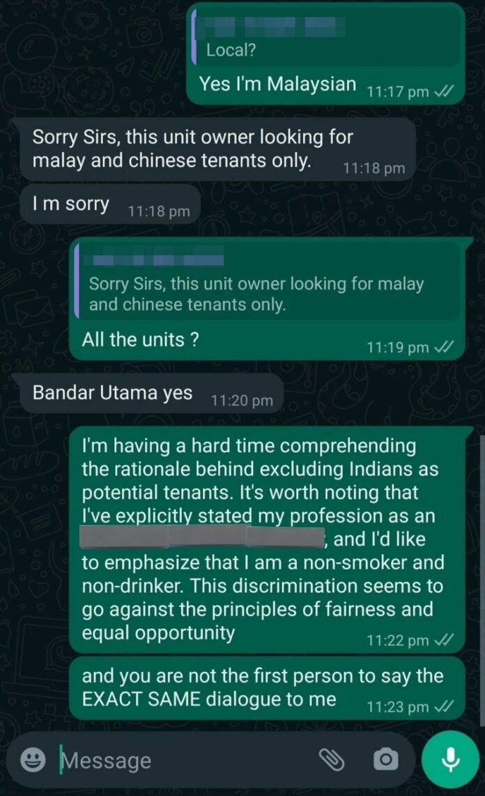 (吉隆坡15日讯)一名印裔男子在社交媒体披露,他因印裔身分而一直被几名房东拒之门外,甚至长达一个月都找不到租房,令他大感失望。