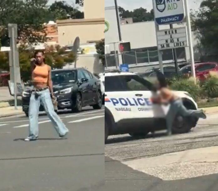 流传社群媒体上的画面显示,女子持手枪站上拿骚郡(Nassau)繁忙的十字路口,以倒退走、侧身走的方式阻碍交通,枪口指着其中一辆车,又换到下一辆车,没人搞得清楚她要做什么。女子一度将枪口抵住自己的脑门,接着开起来神色慌张,一辆警车突然向她冲了过来,将她撞倒在地,多名员警立刻涌上将她制伏。