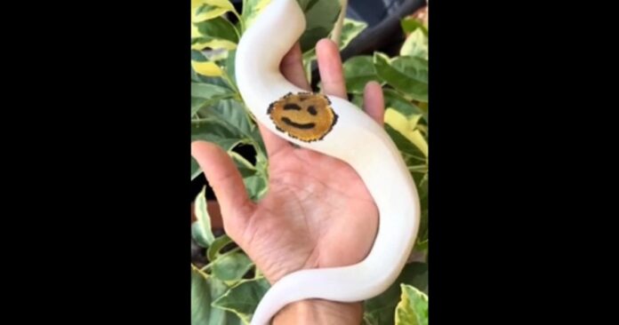 根外媒报导,有名美国爬行动物饲养员尼柯尔森(Branden Nicholson)常在社媒上分享他饲养的爬行动物。7日,他在抖音中分享这条球蟒的日常,网友注意到蛇身上居然有一个大大的“笑脸”,他回应“当初看见这个花纹时,我真的很开心”。
