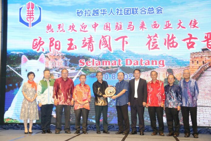 “借此机会,我衷心地感谢砂拉越华人社团联合总会、各友好华团、广大华人华侨为促进中马友好交往所做的不懈努力和积极贡献,以及对中国驻马大使馆和驻古晋总领馆工作给予的理解和大力支特。”