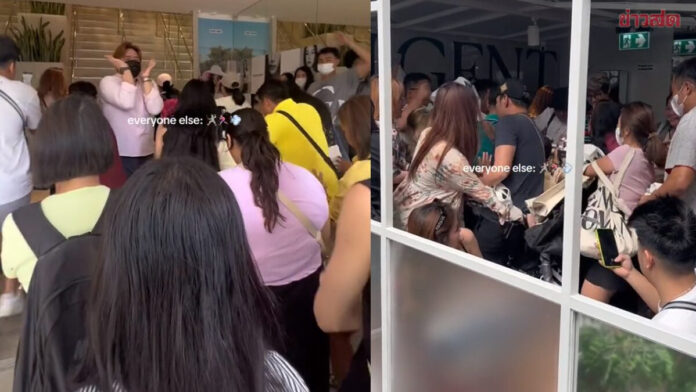 随着店铺工作人员打开门,排队的人们纷纷涌入店内,争相抢购店内的包包。从视频中可以明显看出,使用”争抢”来形容并不过分,因为有些人甚至直接从他人手中夺走商品,仿佛无需支付费用一般。这样的行为让观看视频的人感到困惑,尤其是泰国民众纷纷提出疑问:这是哪家分店?是否正在举行促销活动?为何会出现如此激烈的争抢现象?