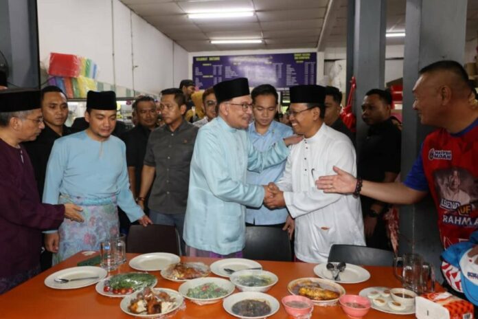 首相是在中午12时35分抵步埔莱国会选区的淡杯琴峇卡花园美食中心,与选民及支持者共进午餐及交流,出席者包括柔佛州务大臣拿督翁哈菲兹。
